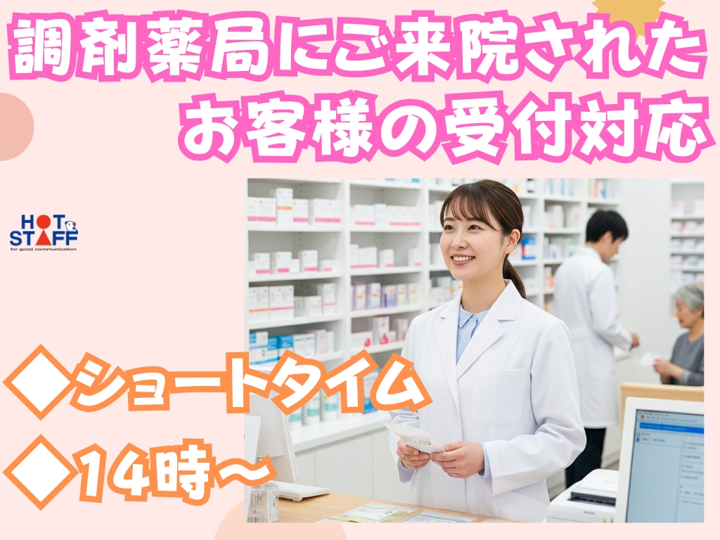 《調剤薬局にご来院されたお客様の受付対応♪》未経験OK/ショートタイム/14時から勤務/残業なし