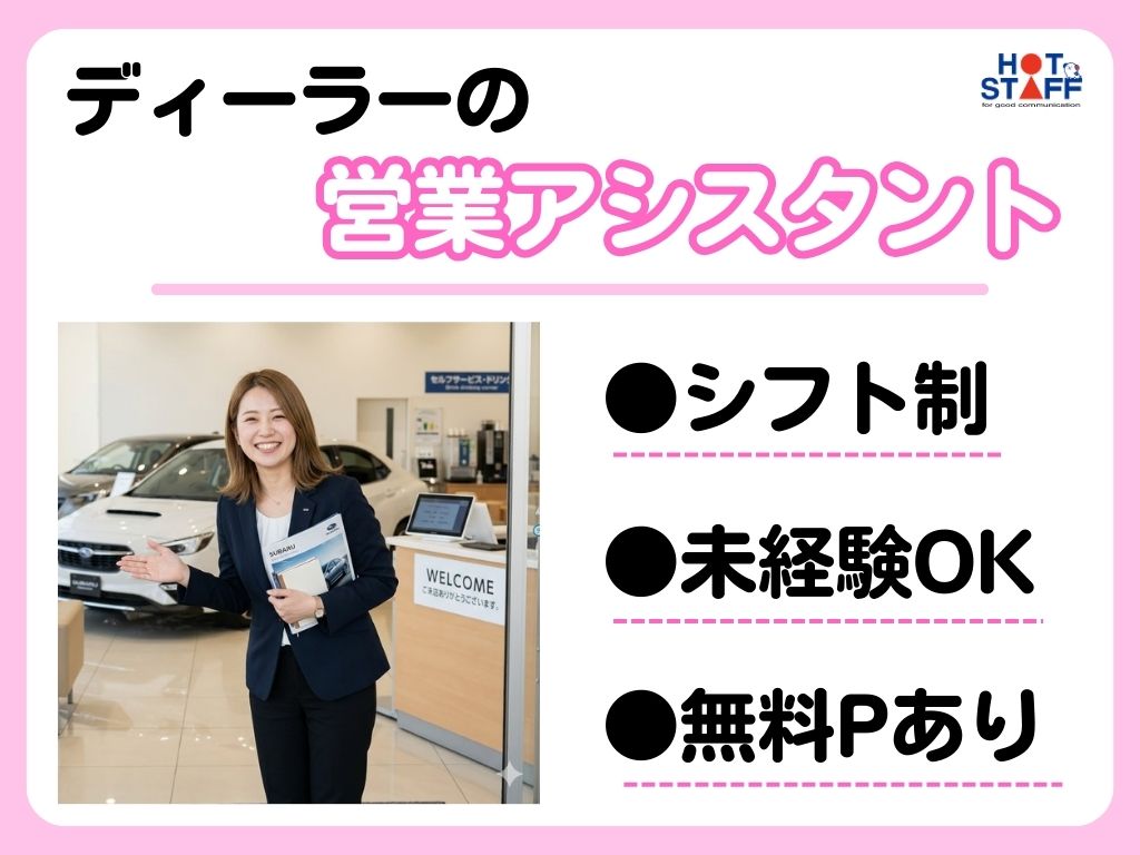《ディーラーでお客さまのご案内や書類の作成♪》未経験OK/長期連休あり/シフトの相談OK◎