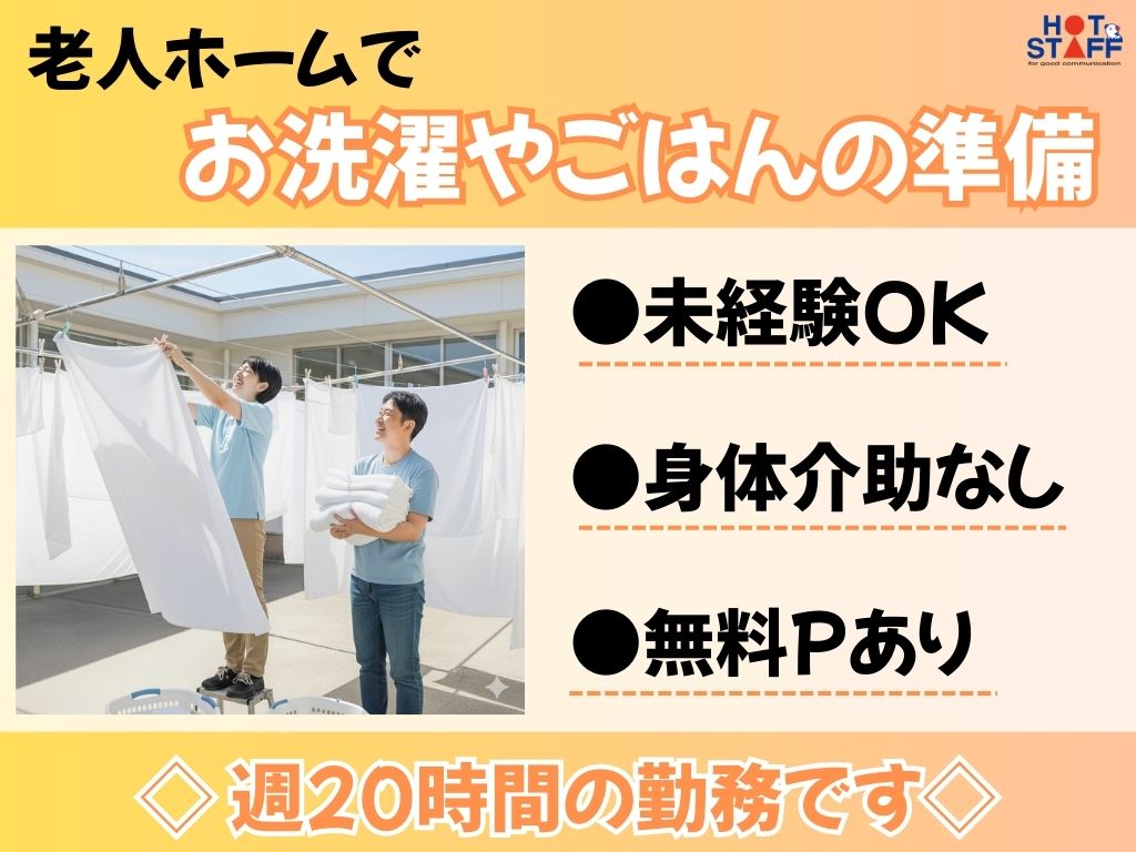 《身体介助なし・老人ホームでお洗濯や調理補助》月木+土or日の勤務/経験不問/車通勤OK