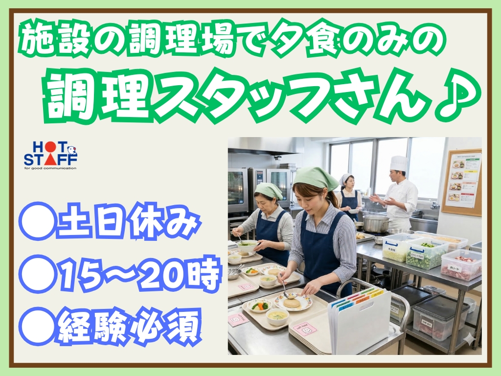 《施設の調理場で夕食のみの調理スタッフさん♪》経験を活かそう/土日休み/15時~20時/無料P完備