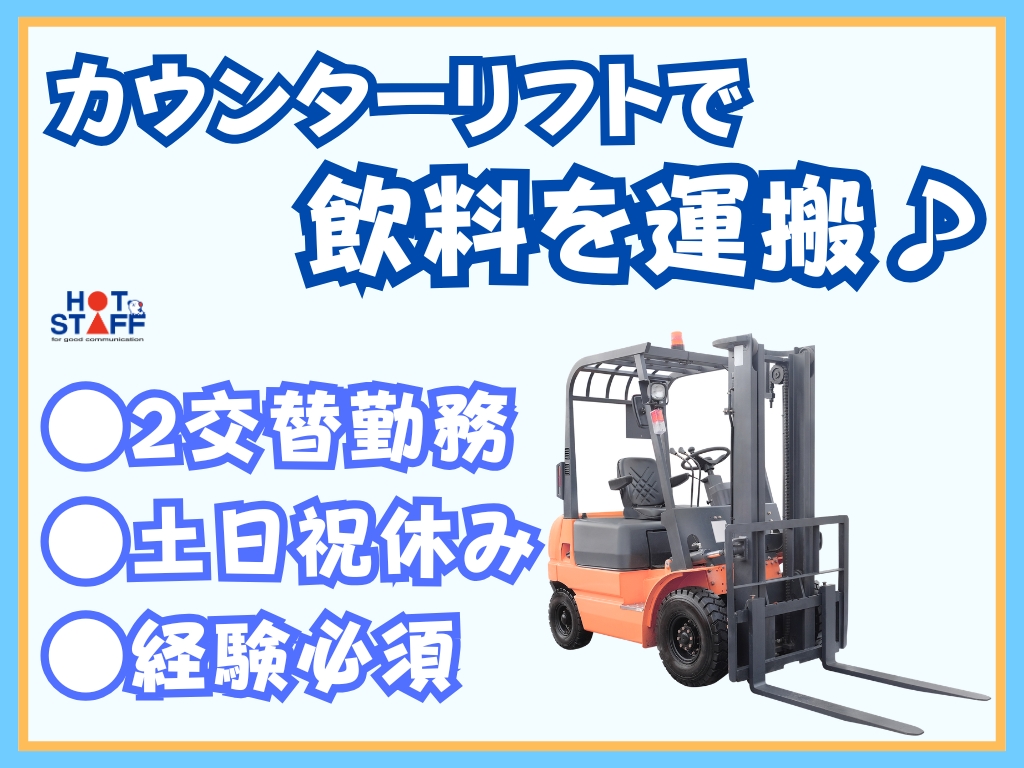 《カウンターリフトで飲料が載ったパレットの運搬作業♪》リフト免許必須/昼夜勤の2交替/土日祝休み