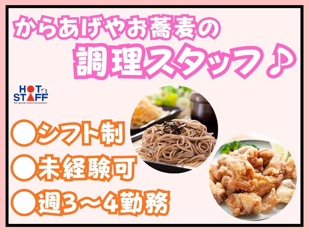 《からあげやお蕎麦の調理・注文を受けてお会計!》シフト制/週3~4勤務/車通勤OK◎