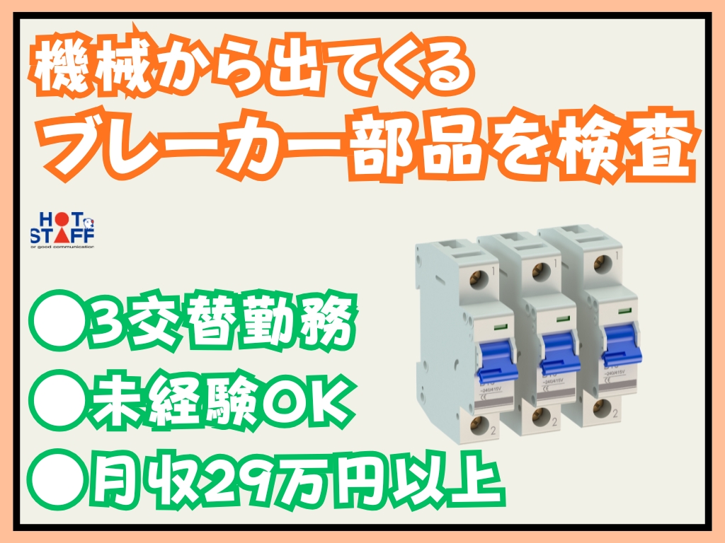 《機械から出てくる手の平サイズの部品を目視検査♪》3交替勤務/軽作業/月収29万円以上/未経験OK