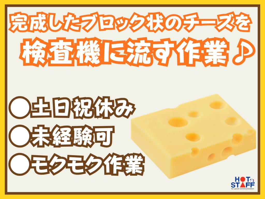 《完成したブロック状のチーズを検査機に流す作業♪》未経験◎/土日祝休み/8時半~16時半/モクモク作業