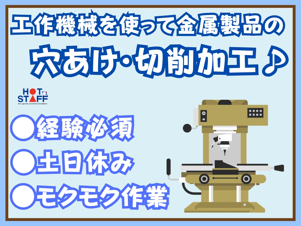 《工作機械を使って直径30センチの金属製品の穴あけ・切削加工》経験必須◎/8時半~17時/土日休み