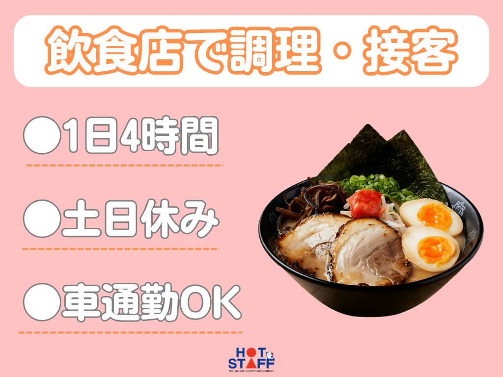 《ラーメン屋さんで調理・接客》11時~15時/土日休み/未経験OK/無料Pあり◎