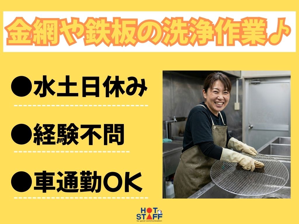 《焼肉屋さんの金網や鉄板を洗うだけ♪》9時~16時/水土日休み/車通勤OK◎