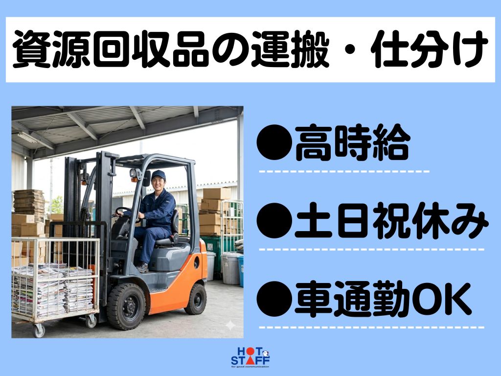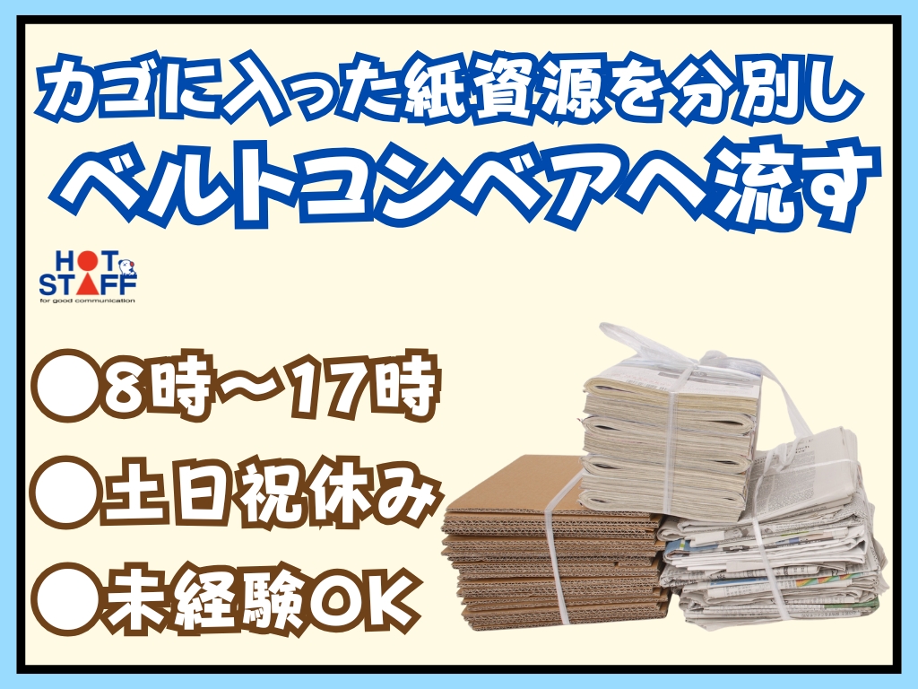《カゴに入った紙資源を分別してベルトコンベアへ流す♪》未経験◎/8~17時/土日祝休み/単純作業
