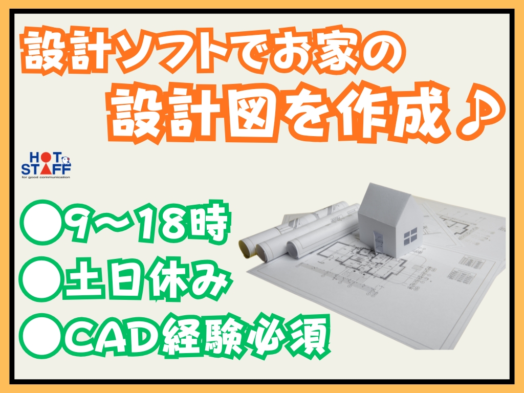 《打ち合わせ内容を元に設計ソフトで家の設計図を作成》経験必須/9~18時/土日休み/月収28万円以上