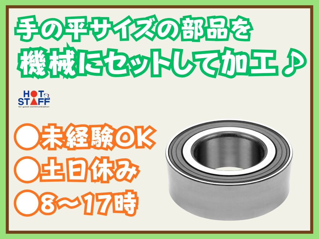 《手の平サイズの部品を機械にセットして加工♪》未経験◎/土日休み/8時~17時/無料駐車場完備
