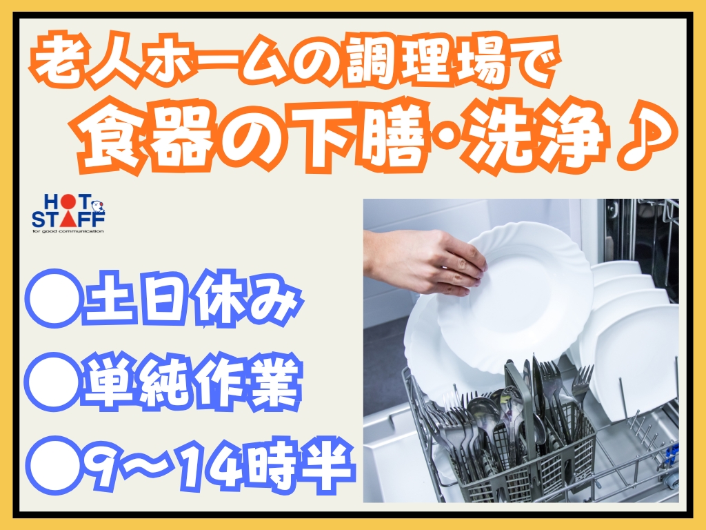《老人ホームの調理場で食器の下膳や洗浄業務♪》未経験◎/土日休み/9~14時半/残業なし/単純作業