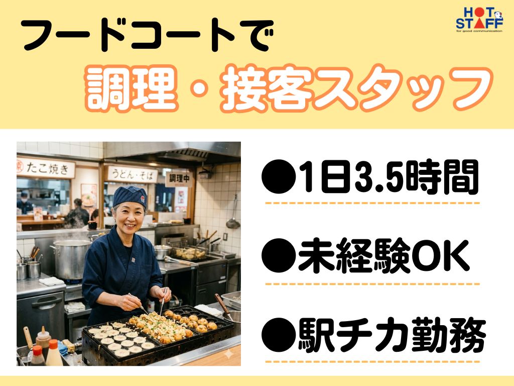 《フードコートの飲食店で調理&接客スタッフ》11時半~15時/週6勤務/駅チカ/未経験OK◎