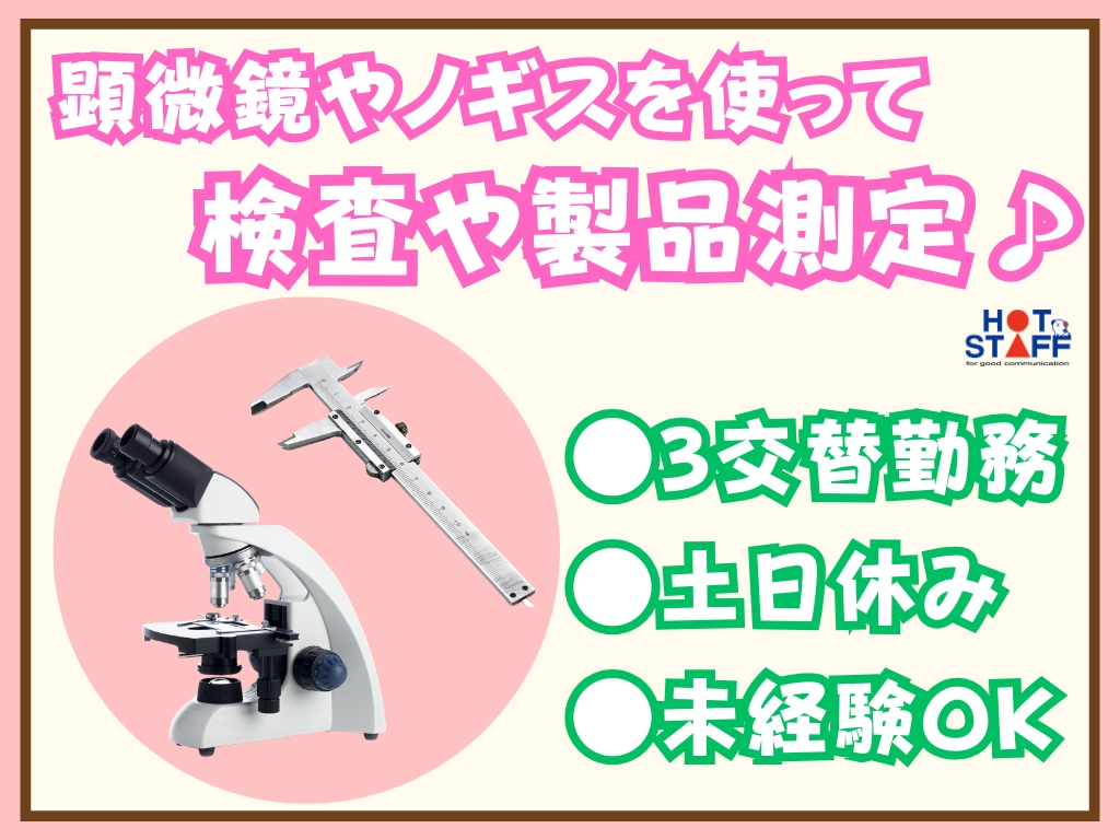 《ティッシュBOXサイズの部品を道具で検査や測定♪》未経験◎/月収28万円以上/3交替勤務/土日休み