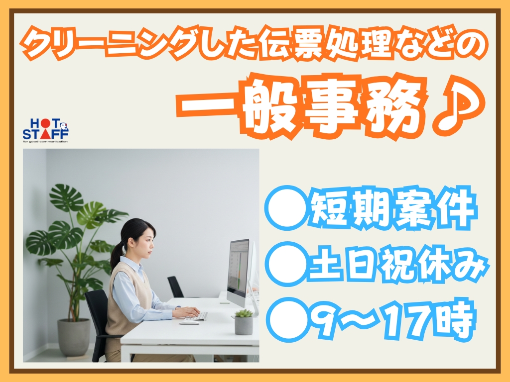 《衣類などをクリーニングした伝票の処理などの一般事務♪》未経験◎/2ヶ月の短期/9~17時/残業なし