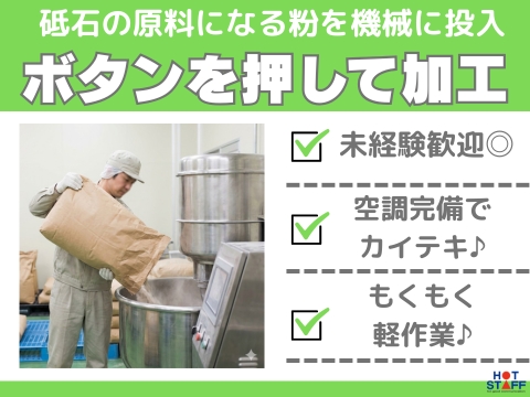 日勤専属!/空調完備◎/未経験スタート応援!/近くにバス停アリ◎/砥石の原料粉を量って機械でプレス
