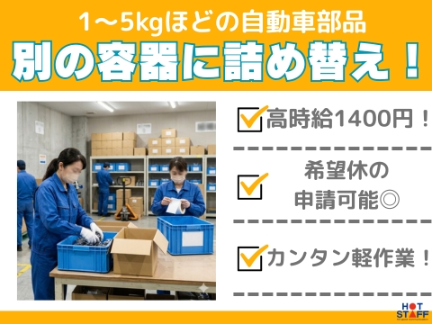 未経験応援!!/完全土日休み/希望休の申請OK◎/手のひらサイズの自動車部品を別の容器に詰め替え!