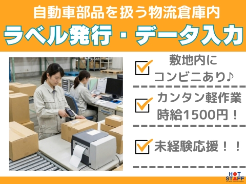 高時給1500円!/完全土日休み/日勤専属◎/伝票情報の入力とラベルを印刷してダンボールに貼る作業