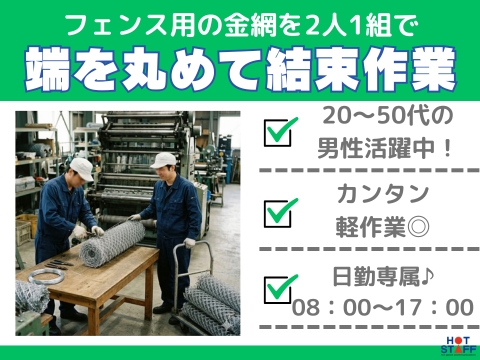 完全土日祝休み♪/シンプル軽作業/日比野駅から徒歩16分/フェンス用の金網を丸めて結束し台車で運搬!