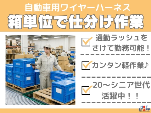 06:30~15:15/カンタン軽作業/最大重量はたったの5kg/箱単位でワイヤーハーネスの仕分け