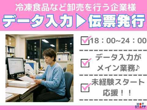 1日6時間勤務/18:00~夜勤事務!/未経験OK◎/ネイルOK!/伝票作成や出荷内容伝票のチェック