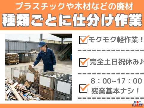 完全土日祝休み/1日7.5時間勤務/未経験応援!/プラスチックなどの廃材を選別して箱に仕分けるだけ!