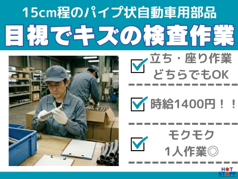 座って作業もOK!/完全土日休み/軽作業/時給1400円/15cm程のパイプ型車部品のキズを目視検査