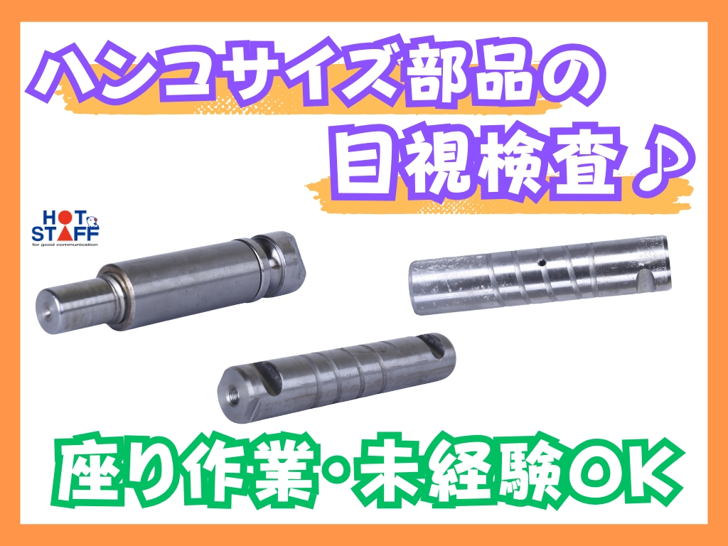 《検査台にてハンコサイズ部品を手に載せて検査チェック♪》座り・立ち作業選べる/未経験OK/土日休み