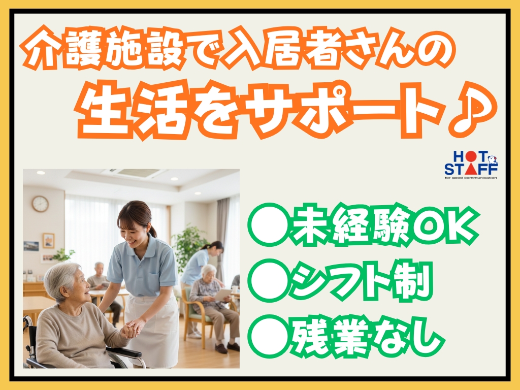 《介護施設で入居者さんの生活をサポート♪》未経験◎/希望休の相談OK/残業なし/月収23万円以上