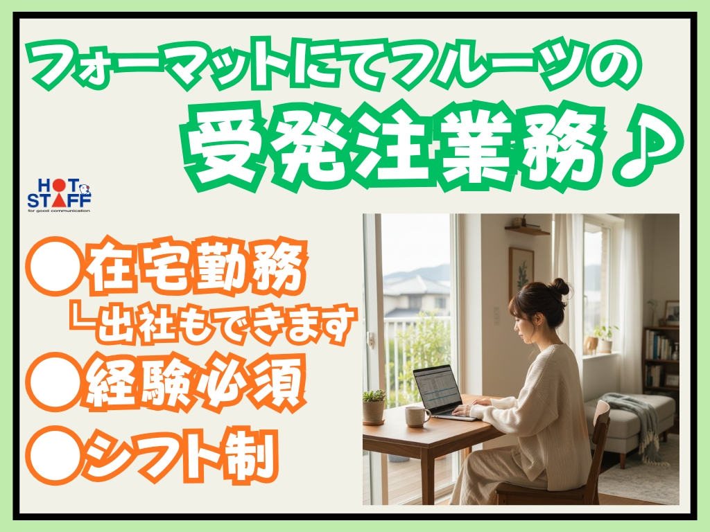 《フルーツの受発注業務や現場指示書などの作成♪》在宅勤務◎/経験必須/10~19時/月収25万円以上