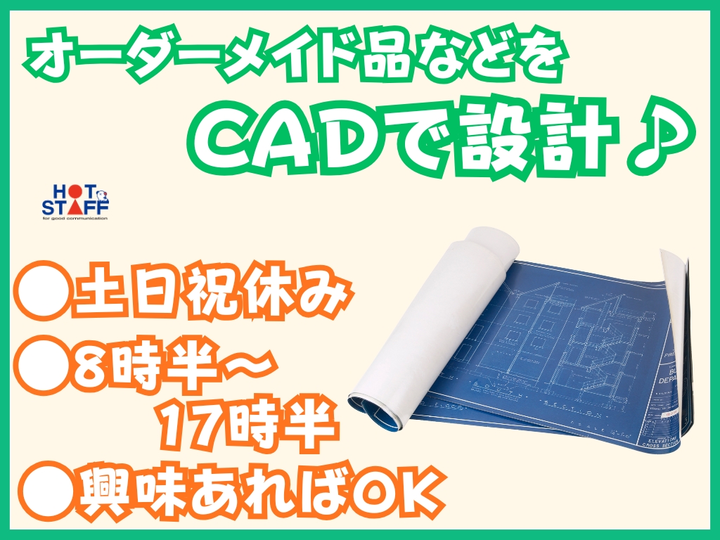 《オーダーメイド品などをCADで設計や3Dプリンタで生成♪》未経験◎/土日祝休み/8時半~17時半