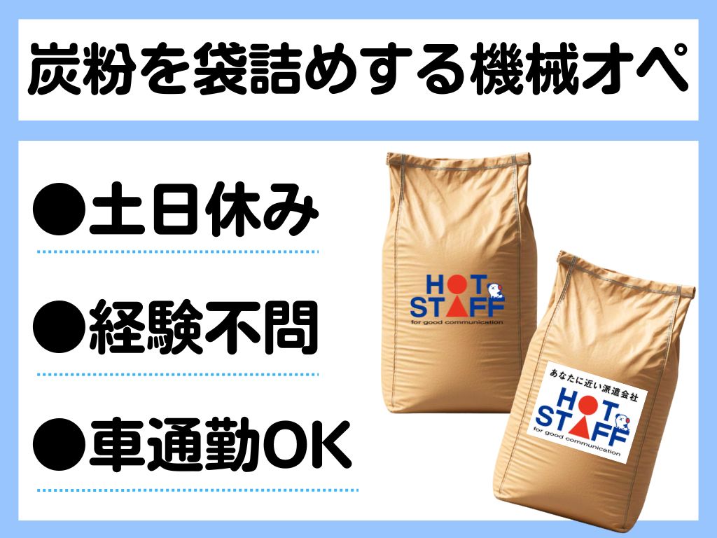 《機械に炭を入れてスイッチを押すカンタン機械オペ》日勤のみ/土日休み/シャワー設備あり/未経験OK◎