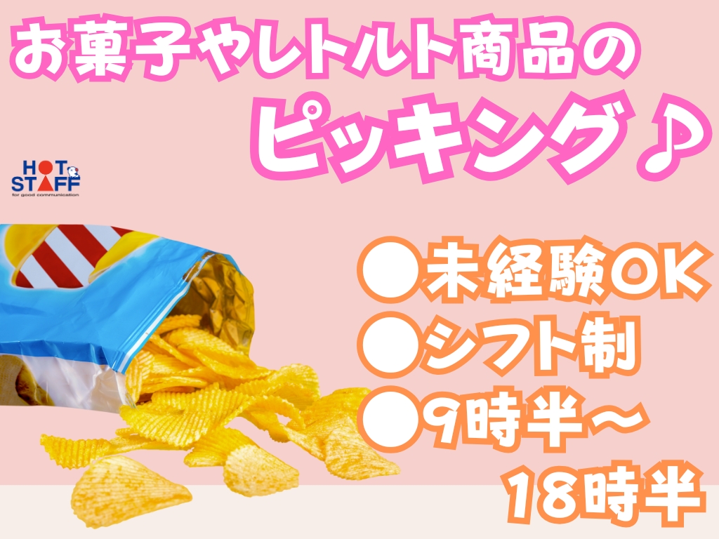 《棚の赤いランプが光ったお菓子やレトルト商品をピッキング♪》未経験OK/9時半~18時半/シフト制