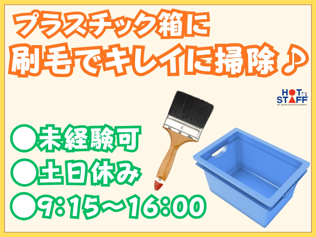 《プラスチック箱に付いた鉄くずなどを刷毛で掃除♪》未経験◎/9:15~16:00/土日休み/軽作業