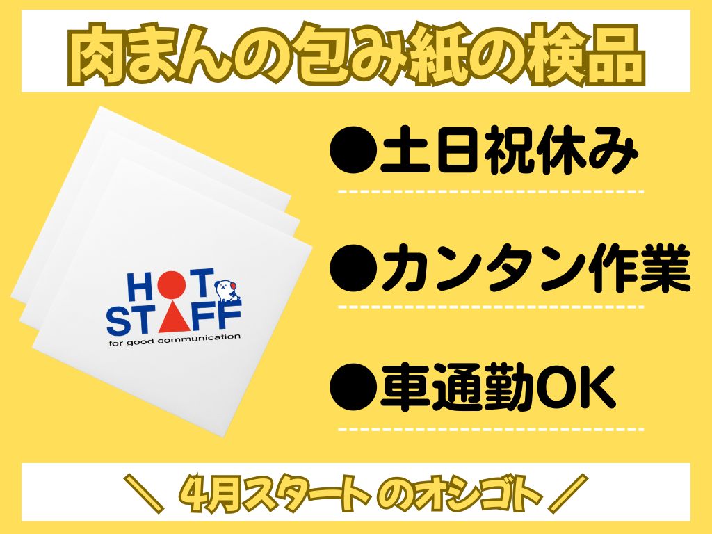 《4月スタート・肉まんの包み紙をペラペラめくって印字のチェック》土日祝休み/軽作業/車通勤OK