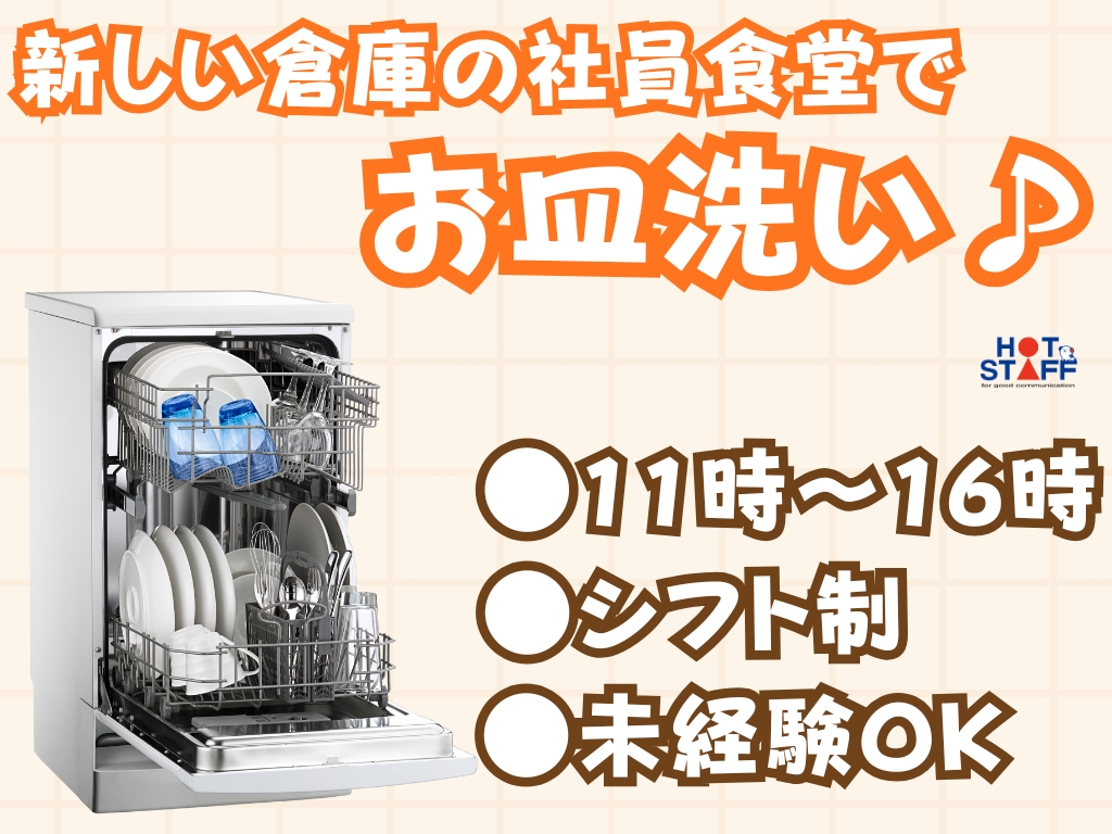 《新しい倉庫の社員食堂でお皿洗い♪》シフト制/未経験OK/11時~16時/希望休の相談OK/空調完備