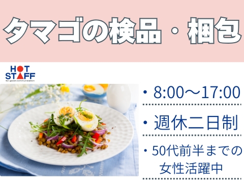 未経験さん◎カンタンな作業★/日勤・週休二日・残業なし/サラダなどに使う半熟タマゴの検品や梱包作業♪