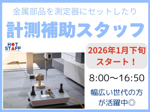 経験を活かして働ける!/日勤のみ・土日休み/金属部品を測定器にセットしたりなどの補助スタッフ♪