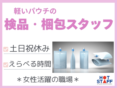 空調完備★ラクラク軽作業/選べる日勤&夜勤・土日祝休み◎/パウチを数えて◎検品や梱包作業♪