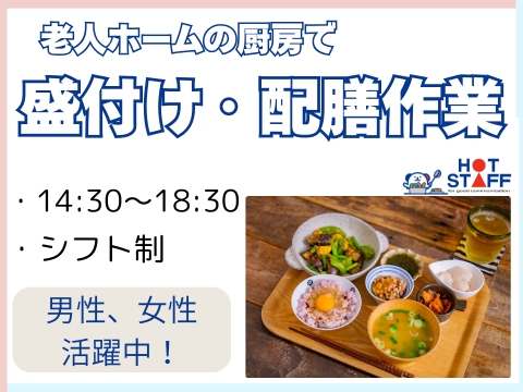 未経験OKの調理補助☆1日4時間!/シフト制・残業なし/野菜をカットしたり◎利用者さんへの配膳作業♪