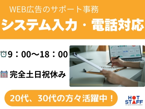 事務経験が活かせる♪/9時出勤・土日祝休み/マニュアルに沿って入力◎WEB広告のサポート事務!