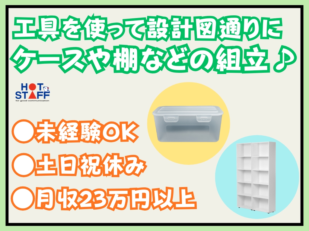 《電ドラを使用してキャビネットの組立スタッフ》空調完備/土日休み/髪色自由/未経験OK/日勤専属