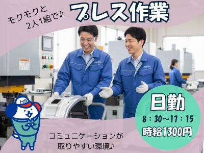 一人じゃないから安心♪社員さんとペアで進める簡単プレス補助★日勤のみ×残業あり|完全土日休み