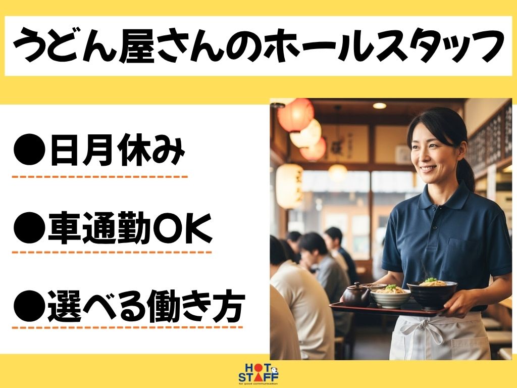《料理の提供やお会計などホールSTAFF》日月休み/ランチ営業のみの勤務もOK/無料駐車場あり♪