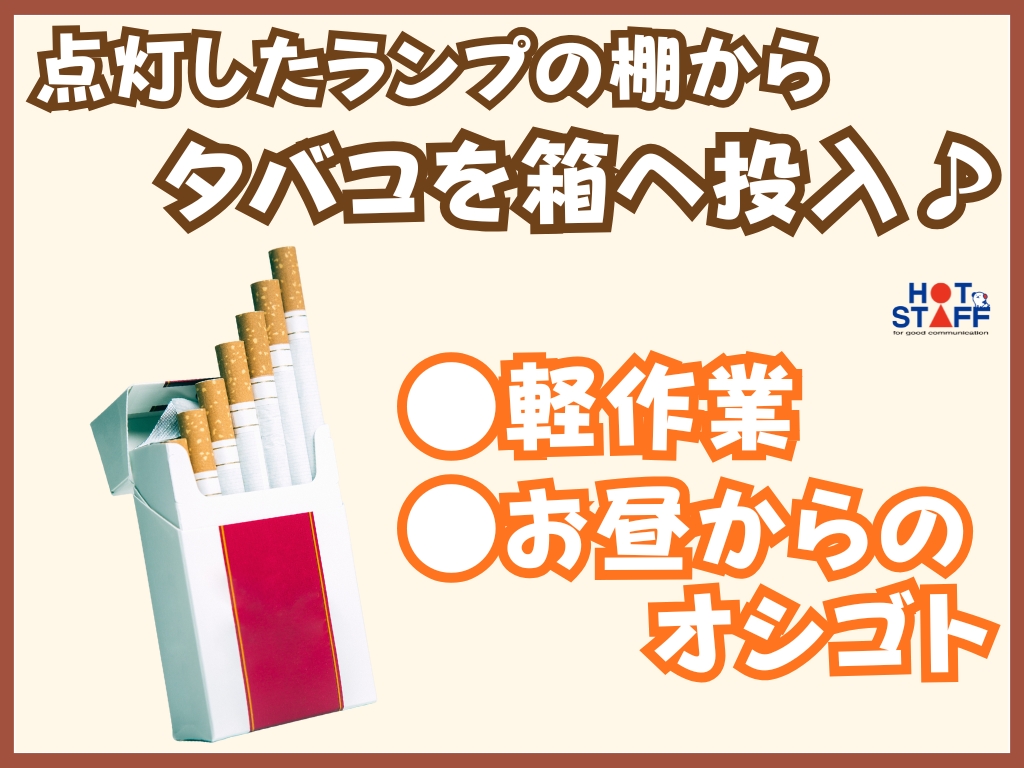 《点灯したランプの棚からタバコのカートンを箱に入れるだけ♪》軽作業/お昼からのオシゴト/空調完備