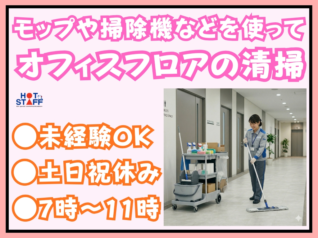 《モップや掃除機などを使ってオフィスフロアの清掃♪》未経験◎/土日祝休み/7時~11時/残業なし