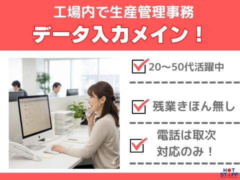 残業は最大月10時間/書類に記載されている『個数』『単価』などのデータ入力/事務スタッフ