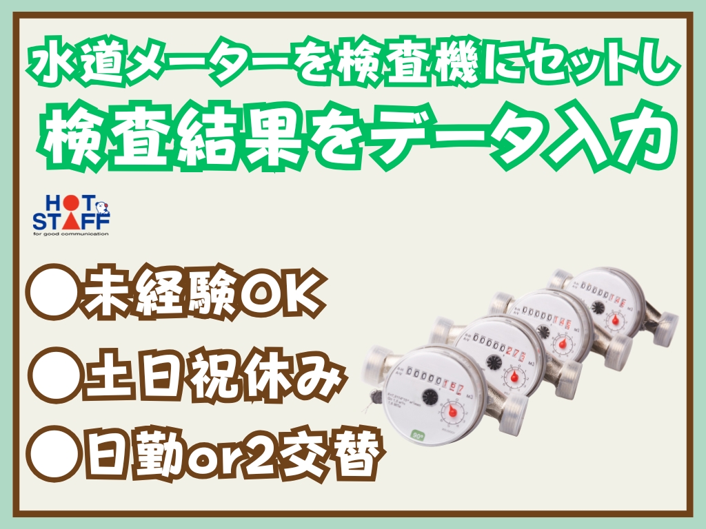 《水道メーターを検査機械にセットして検査結果をデータ入力♪》未経験OK/日勤or2交替/土日祝休み