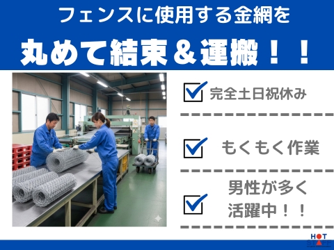 残業基本なし/完全土日祝休み/未経験OK/フェンスに使用する金網を丸めて結束して運搬!!