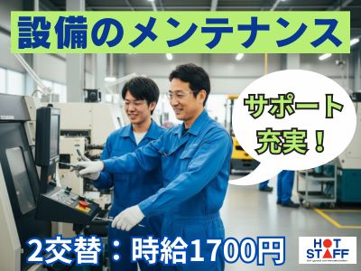 【交替制で月30万以上も!】スキルが身に付く★設備のメンテナンス|土日祝日休み・直接雇用の実績あり
