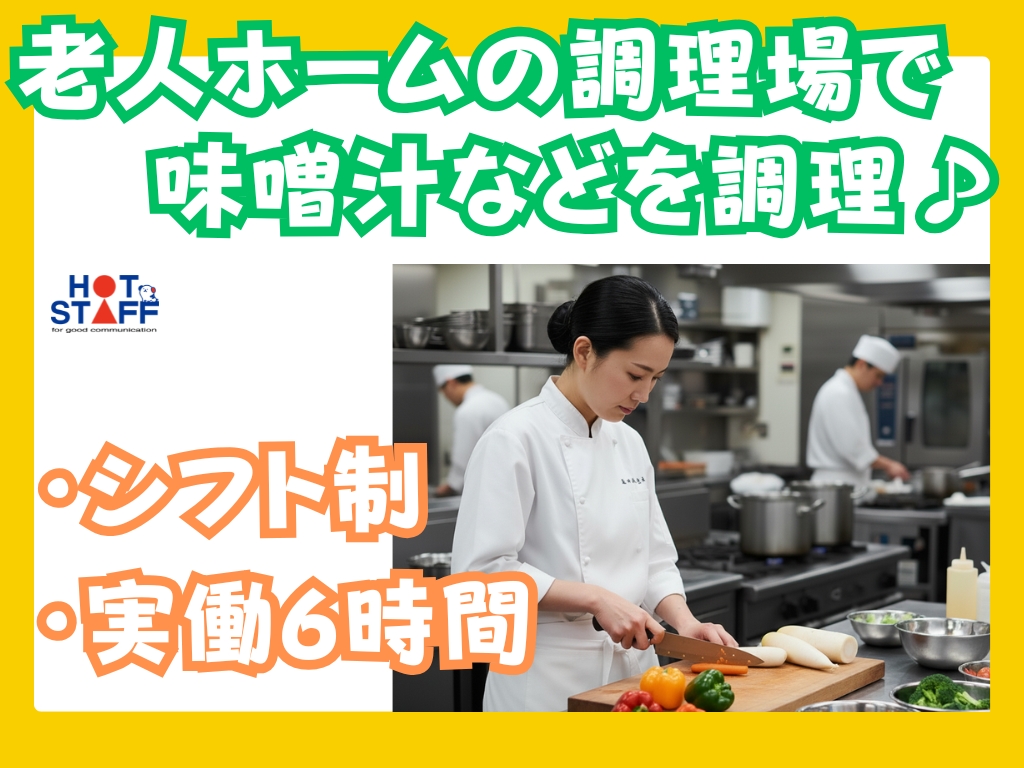 《老人ホームでお味噌汁やおひたしなどのサイド料理を調理♪》未経験OK/シフト制/希望休の相談◎